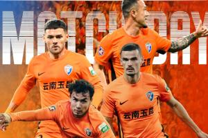云南玉昆首发:1-马镇、3-徐宏杰、4-李松益、5-迪力穆拉提、15-马丁内斯(F)、8-叶楚贵、10-约尼查(F)、14-内内(F)、30-侯永永、9-佩德罗-恩里克(F)、25-奥斯卡(F)