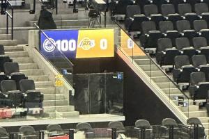 赛前,球员通道入口的双方比分有点骇人,快船100分,而湖人则是0分。