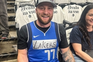🤣我是达拉斯湖人球迷!球迷改装东契奇球衣 手写“湖人”吸睛