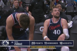可喜可贺!祖巴茨手递手助博格丹再扔进三分!拿到生涯首次三双!
