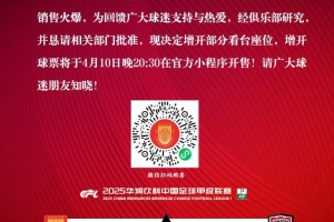 重庆铜梁龙官方:因4月12日重庆铜梁龙VS陕西联合月亮泊赛事球票销售火爆,为回馈广大球迷支持与热爱,经俱乐部研究并恳请相关部门批准,现决定增开部分看台座位,增开球票将于4月10日晚20:30在官方小程序开售!请广大球迷朋友知晓。