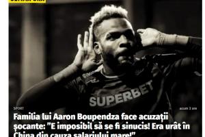 体育资讯04月17日讯 据最早报道布彭扎猝然离世的罗马尼亚媒体fanatik消息,布彭扎家人提出惊人指控——“他不可能自杀!他在中国因高薪遭人嫉妒”。