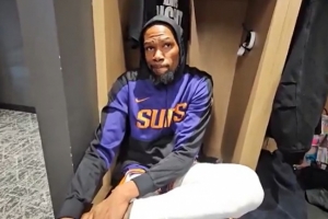 赛后采访,杜兰特表示:“(面对联防时)你不能只是单纯地传球,然后绕着外线回来走,那正是他们希望你做的。我们仍然需要尽力去突破他们的防线。当他们有球员在禁区蹲守时,我们只是在外线传球,没打出直接的进攻威胁,那时候他们开始回收防线,所以你很难攻破他们的防守。面对这种防守是挺难的,如果你只想着投篮机会会自己出现,而不主动去施压那是不行的。我认为我们本可以多突破几次。但我们并不是每场比赛都遇到联防,我们目前还没有完整的联防进攻战术包,我们对此不熟悉。所以,面对对手突然使出的联防,我们需要调整。他们是个强队,他们总能及时做出调整。”