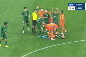 第37分钟,泽卡踩中王刚脚后跟!主裁唐顺齐果断出示红牌将前者罚下,泰山只剩9人应战!