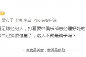 张冰在社媒透露写道:“如果一个所谓足球经纪人,打着要给俱乐部总经理好处的名义,问球员要了30万,然后全部自己揣腰包里了,这人不就是骗子吗?”