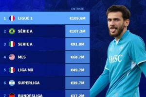 体育资讯1月21日讯 德国转会市场统计了目前冬窗各联赛的转会收入,并列出榜单,法甲1.096亿欧居首,巴甲、意甲排名二三位。