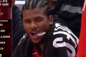 里程悲!阿门季后赛单场砍下至少25+10 火箭队史最年轻后卫
