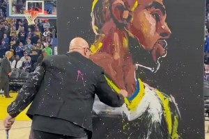 有两把刷子!艺术家在一哥球衣退役仪式现场作画🤣但有点费衣服