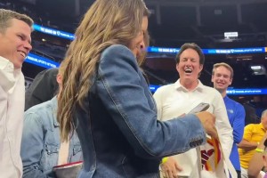 老妈乐开花!赛后半裸库里将臭汗酸战袍扔给观战的金发老母亲😁