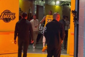 看起来不累啊!砍下33+17+6的老詹,赛后一路小跑回更衣室