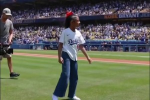 瓦妮莎拍摄留念!科比三女儿比安卡在道奇队比赛投出开赛球