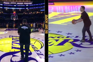 10万美金到手!!湖人中场幸运球迷投进价值千金的半场三分!