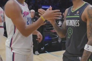 👀李凯尔赛后与森林狼前队友寒暄!和戈贝尔拥抱有说有笑!