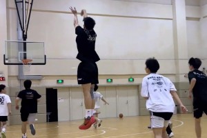 名场面:啦啦队在场边观看,詹姆斯热身时连续冲刺全场上篮!