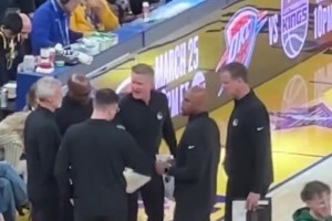 🧐动怒了?科尔与助理教练交流,情绪十分激动……