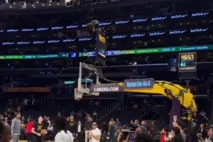 逆天手感令小球迷震惊!东契奇在篮架后方、球员通道前,以超级高弧线投篮得分