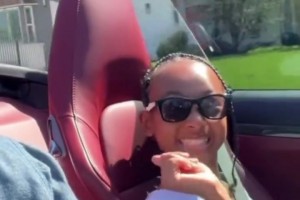 太安逸了!😎詹姆斯开车带着女儿兜风~