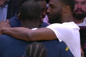 毕竟一起拿过冠军!😁追梦和维金斯赛后哥俩好,聊得非常开心!