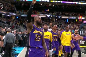 为大哥兴奋!詹姆斯压哨绝杀后,小老弟海斯在旁边蹦蹦跳跳的
