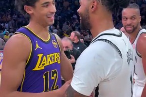 拉塞尔赛后和湖人老队友们逐一拥抱 击掌动作都还没忘🥺