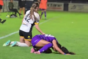 女球员使用飞铲直击对手脚踝,对手发出捅叫响彻球场