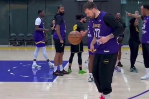 绝对球感!东契奇训练中秀了一波颠球 肩膀停球后飚进三分
