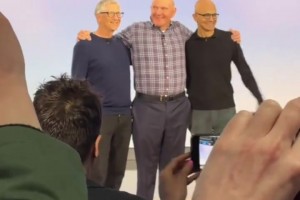 微软50周年庆🤑鲍尔默合影站C位 比尔盖茨和现任总裁列左右