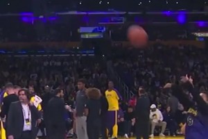 詹姆斯暂停不好好听战术,跑上场给小朋友捡球😂