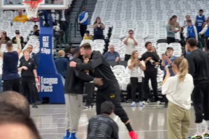关系超好!东契奇进场后,率先与前队友&独行侠工作人员们打招呼