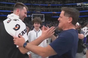 侠蜜的意难平啊!东契奇与前老板库班拥抱致意,开怀大笑