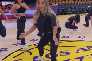 湖人啦啦队赛前模仿湖人球员动作 谁的更像?
