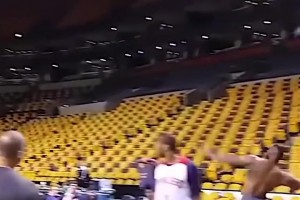 詹姆斯的臂力太恐怖了.....全场单臂扔球还进了😱