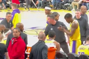 老詹在旁边默默擦汗!🤣雷迪克暂停时对着八村疯狂输出