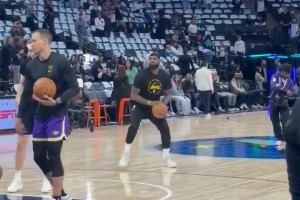 湖狼G3大战在即!詹姆斯赛前热身苦练弧顶三分🎯🎯🎯