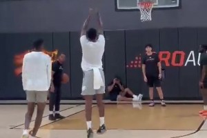 丝滑传人?26届热门秀迪班萨和乔治一起训练 胯下撤步还真挺像