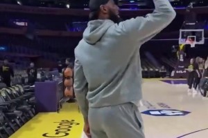 轻装上阵!老詹赛前一边说唱一边玩单手投篮