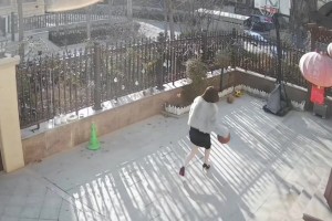 还挺流畅!别墅小姐姐闲来没事就在自家院前运球投篮
