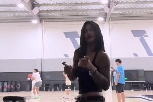 女友镜头前热舞,可以看到后面训练的李添荣