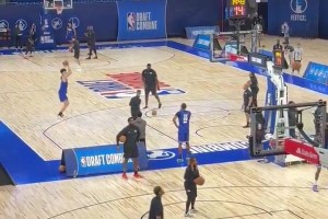 加油!杨瀚森在联合试训中的五点三分投篮测试