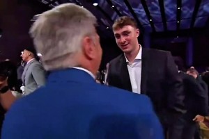 是谁说的不开心?抽签后弗拉格与独行侠CEO聊天笑容满面😄