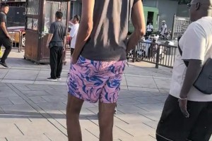 太显眼了哈!网友在北京天坛南门偶遇中国行的文班亚马~