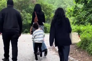 旁边是保镖?网友在纽约的一个公园偶遇瓦妮莎带着三个女儿在游玩