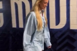 苏菲-坎宁安又是长腿高跟入场,今天要对阵小宝的飞翼