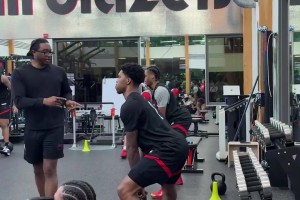 夏联多给杨瀚森传球!开拓者小乐福最新训练,还与小杨交流了几句