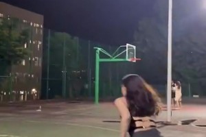 在球场上会拉杆的女生可不常见,更别说穿黑丝拉杆的女生😍