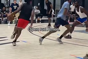 简直降维打击💯阿门-汤普森打野球,后撤步三分&欧洲步样样来