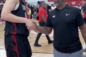 又说my bad了吧?比卢赛后对杨瀚森说:No bad!