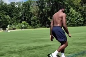 又快又壮!火箭新援奥科吉在足球场上光着膀子进行体能训练