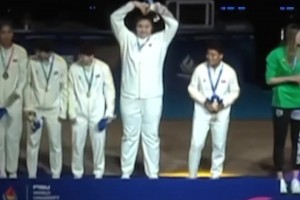 恭喜!大运会中国女篮夺冠 领奖台上可爱的刘禹彤向观众比心~