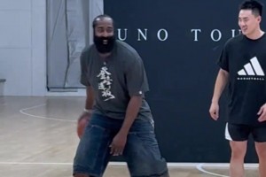 暖心登!面对后撤步调侃,哈登直接拿起球自己模仿违例后撤步🥰